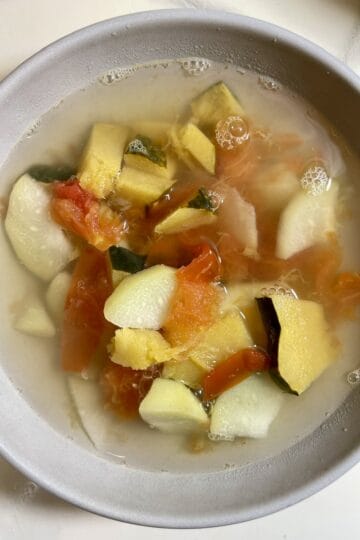 - 7-Ingredient Fruitarian Soup That Nourishes: Tomato, Acorn Squash, Chayote & Lemon
