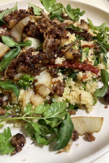 - Lemon Herb Couscous Bowl with Garlicky Vegan Butter Oyster Mushrooms