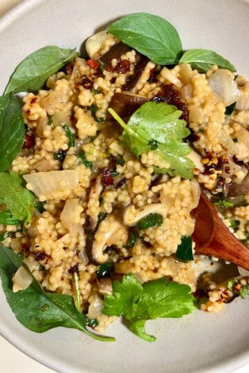 - Vegan Pearl Couscous Risotto with Shiitake Mushrooms (Cheesy & Cozy)