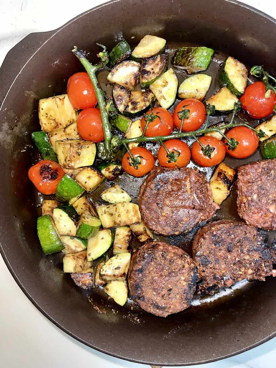 Step 2: Sear the Tomatoes and Zucchini Vegan Meat