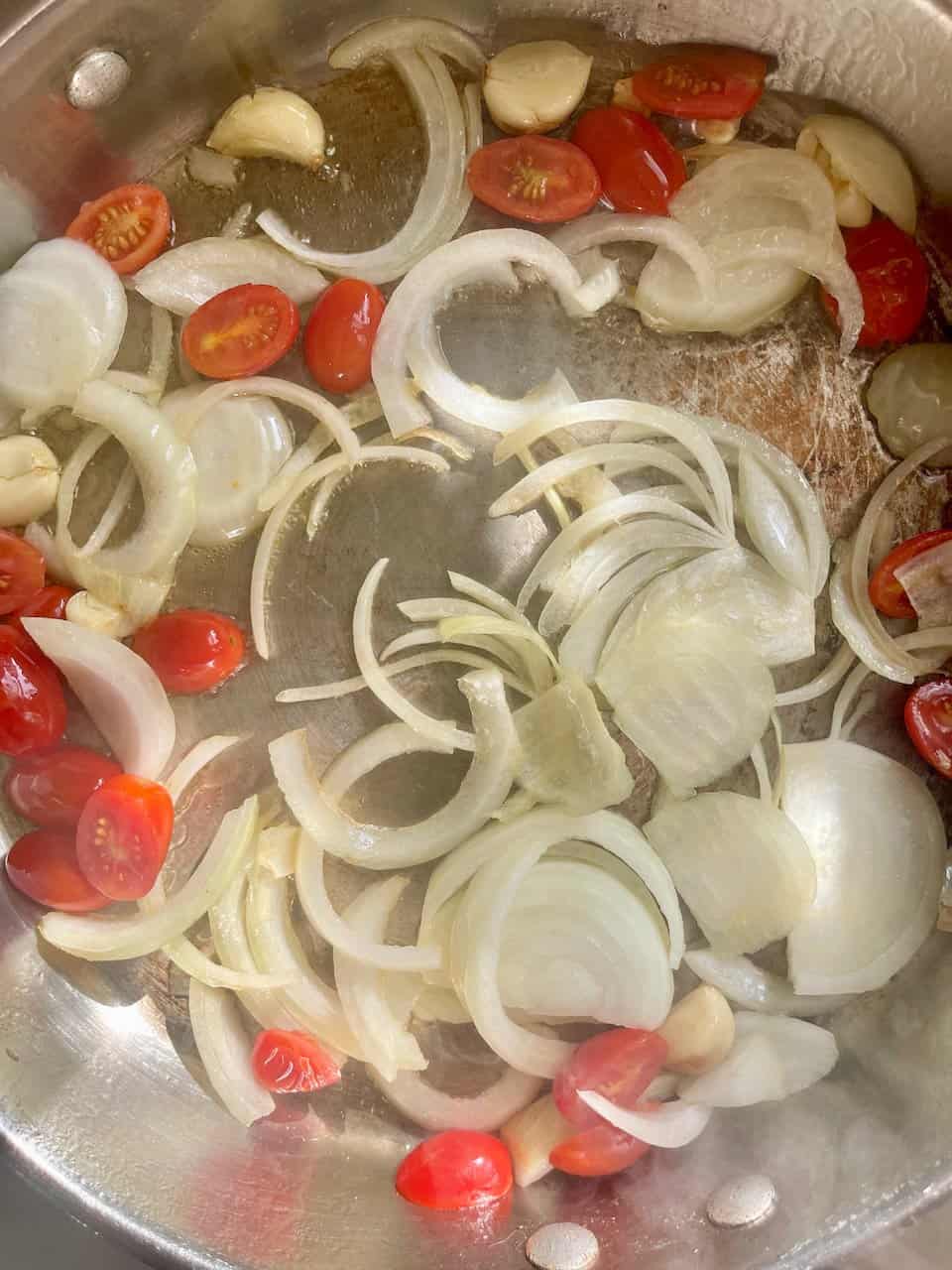 - In a large skillet, heat olive oil over medium heat. Add onion and garlic, sautéing until fragrant and translucent (about 3 minutes).