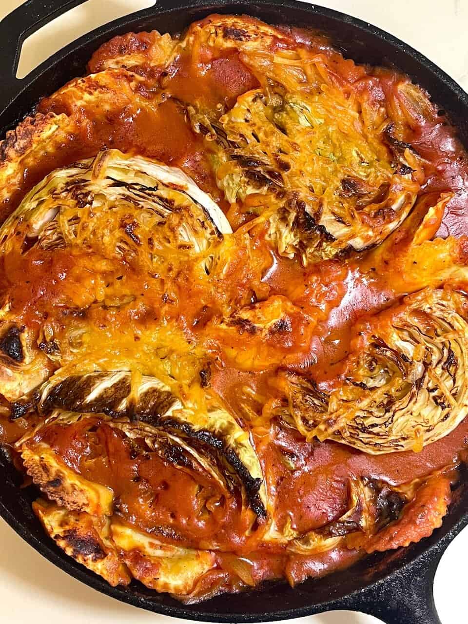 - Transfer the skillet to the oven and bake for 15–20 minutes, until the cabbage is tender, the cheese is melted, and everything is bubbling. Remove from the oven and let rest for a few minutes before serving.