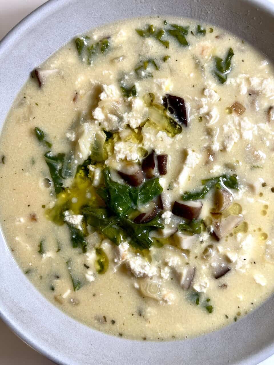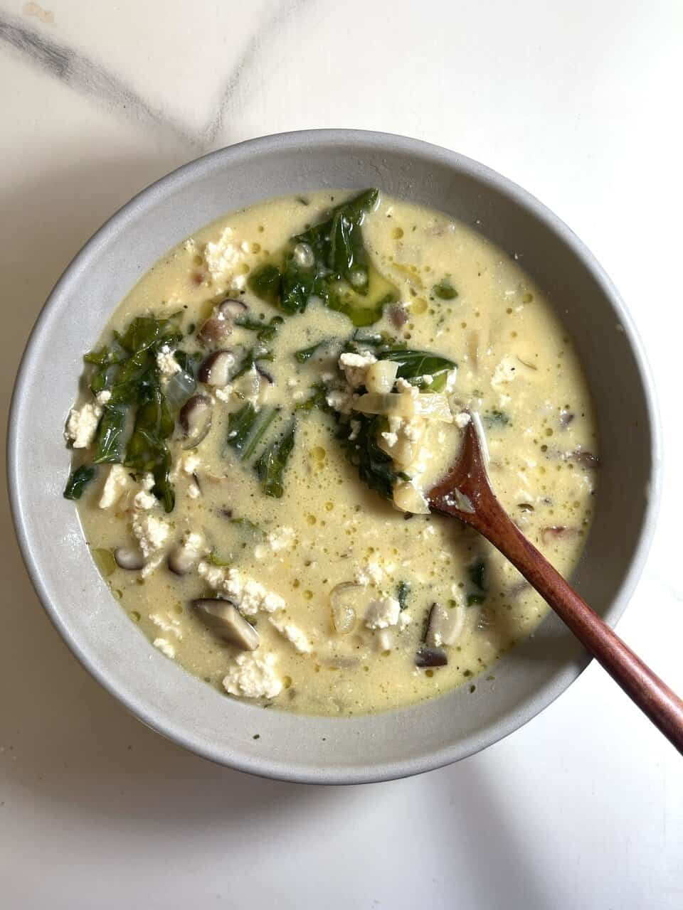 This vegan tofu mushroom cheesy soup checks all the boxes: