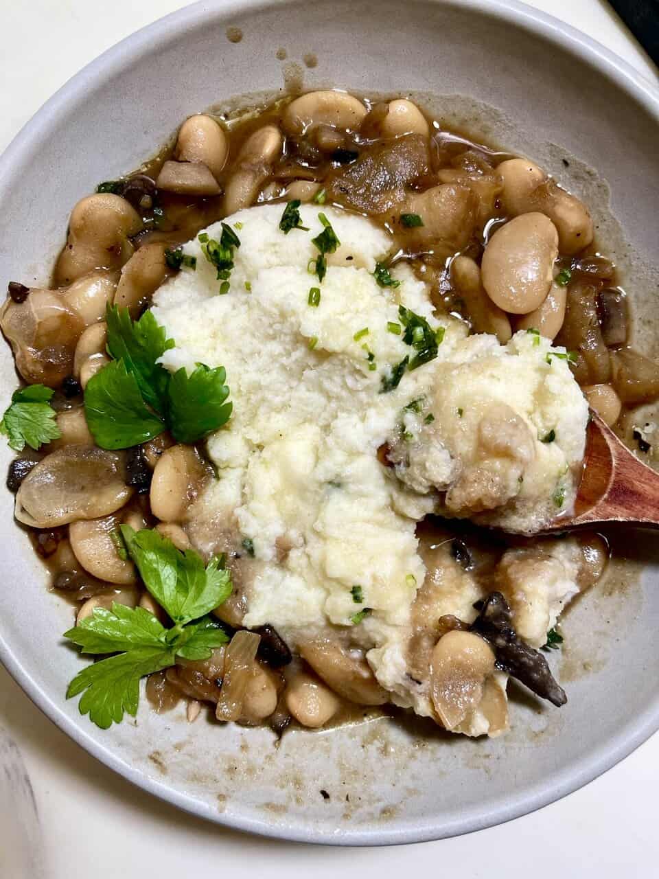 Creamy Hearts of Palm Mash with Savory Butter Beans & Mushroom Ragu