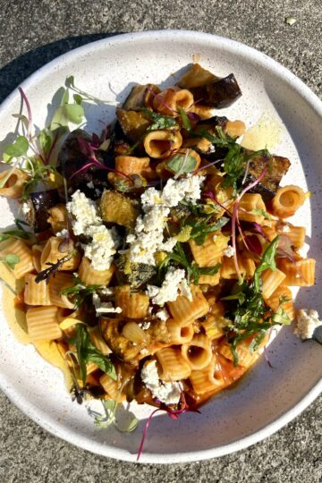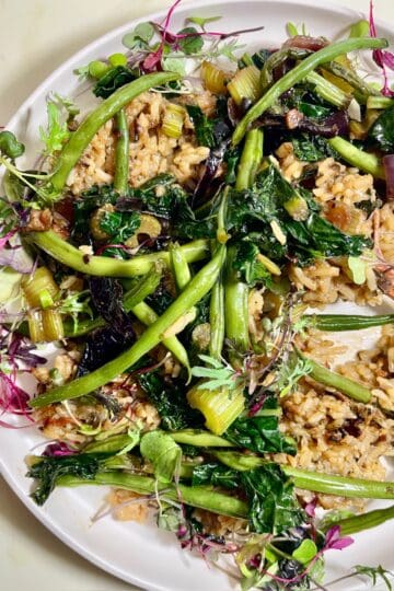 If risotto and pasta had a vegan lovechild, it would be this Creamy Lemony Vegan Orzotto With Tomatoes & Greens. This dish is a revelation: bright, creamy, and hearty without needing butter, cream, or even oil!