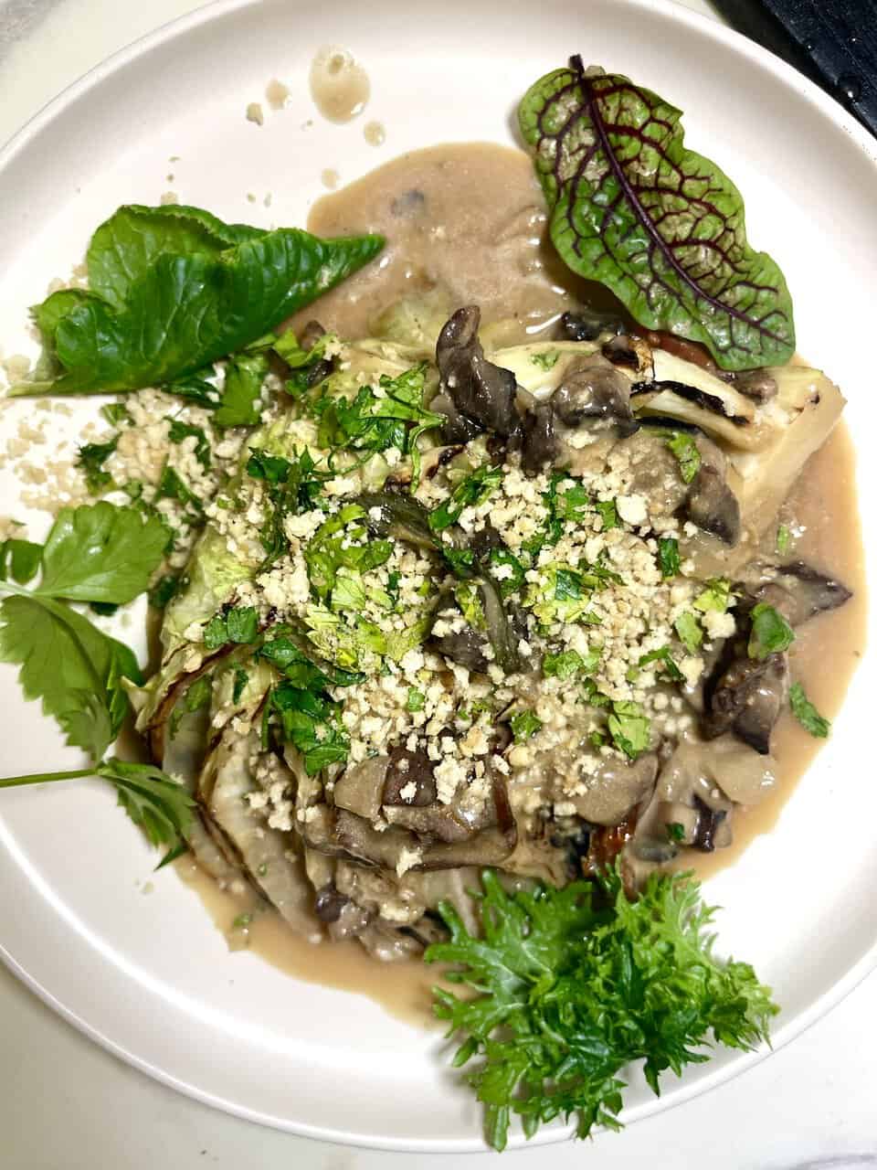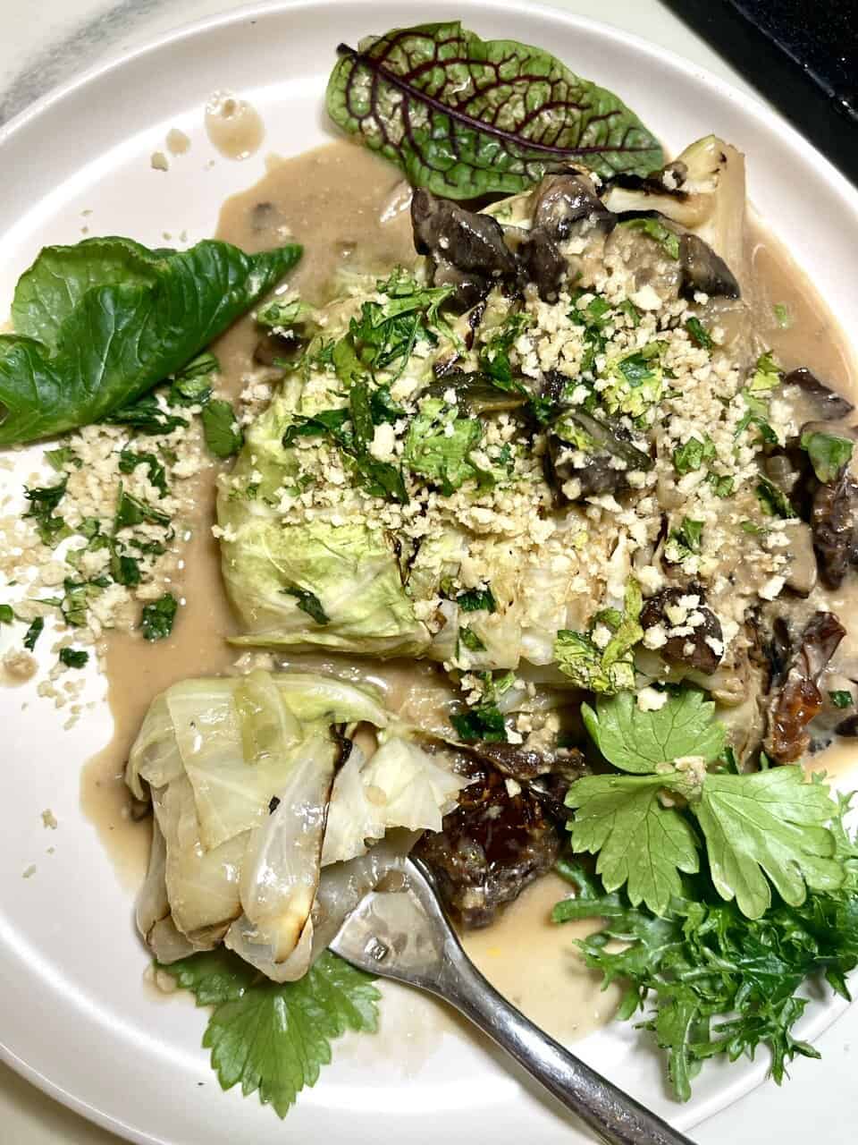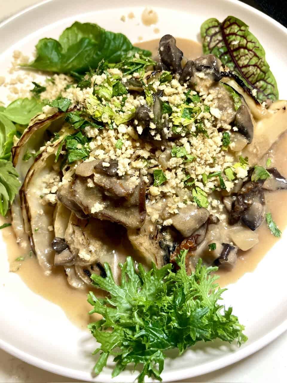 Creamy Vegan Cabbage Wedge Mushroom Recipe with Herby Panko Crunch