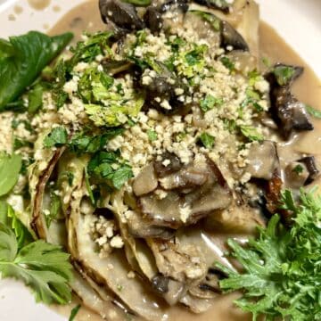If you’re looking for a dish that’s creamy, crispy, savory, and deeply comforting, this vegan cabbage wedge mushroom recipe is about to surprise you—in the best way. Tender pan-seared cabbage wedges, a rich and velvety vegan mushroom sauce, and a final sprinkle of crispy herby panko breadcrumbs come together to turn a humble vegetable into something truly special.