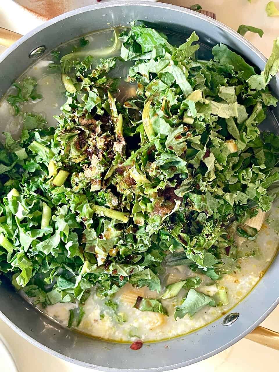 Step 4: Add Greens & Season (4 minutes)