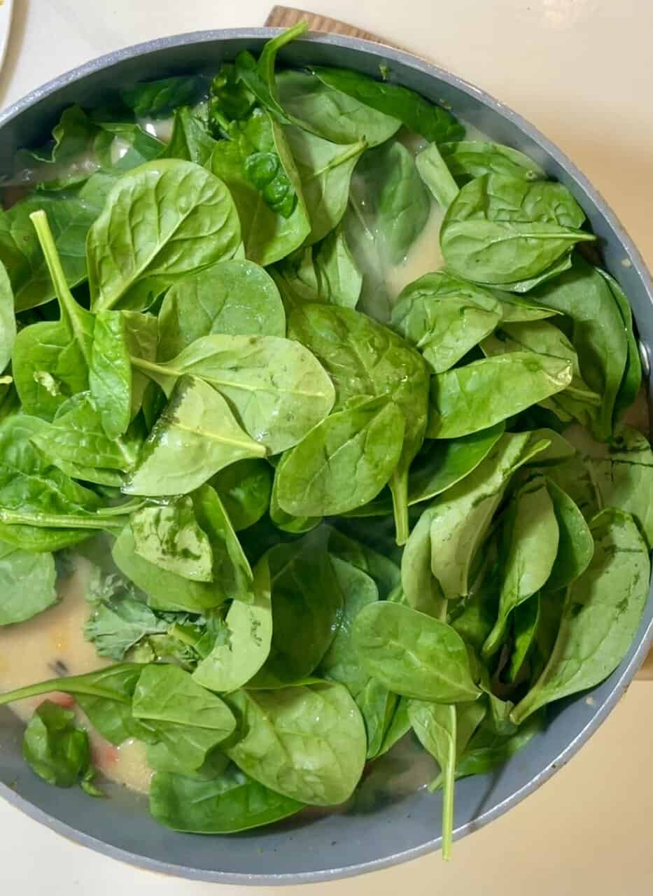 - Add spinach, kale, and vegan cheddar. Stir gently until the greens wilt and the cheese melts into the broth.