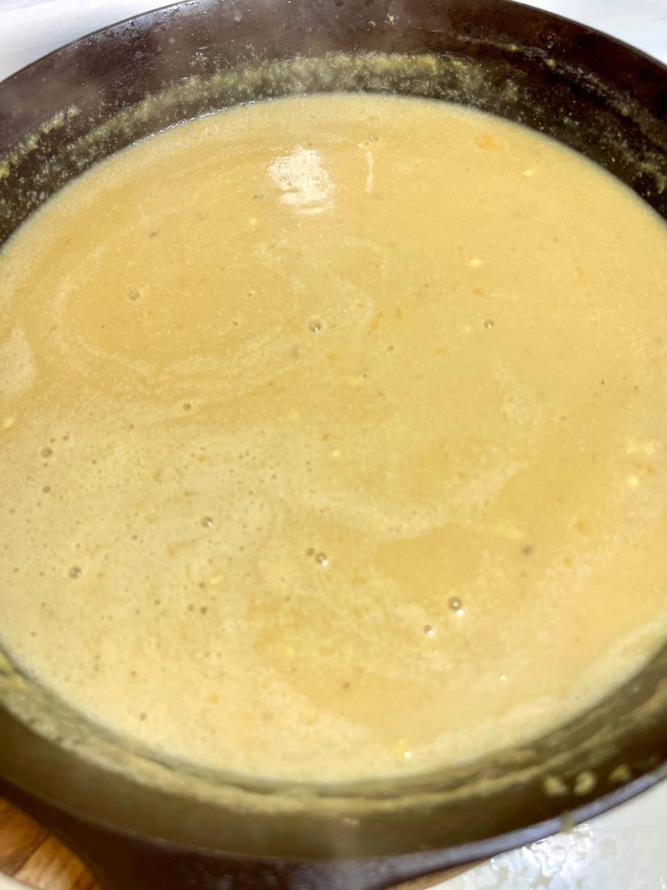 - Slowly pour in plant milk, whisking to avoid lumps.
