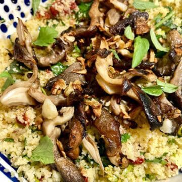 This is my go-to easy dinner—the one I make when I want something deeply satisfying but refuse to overthink it. Garlicky oyster mushrooms sizzling in vegan butter, couscous soaking up olive oil and lemon, and a big mess of herbs and greens folded in at the end. It’s bright, a little indulgent, endlessly forgiving, and somehow always better than expected. The kind of bowl you eat standing at the counter, then immediately make again the next night.
