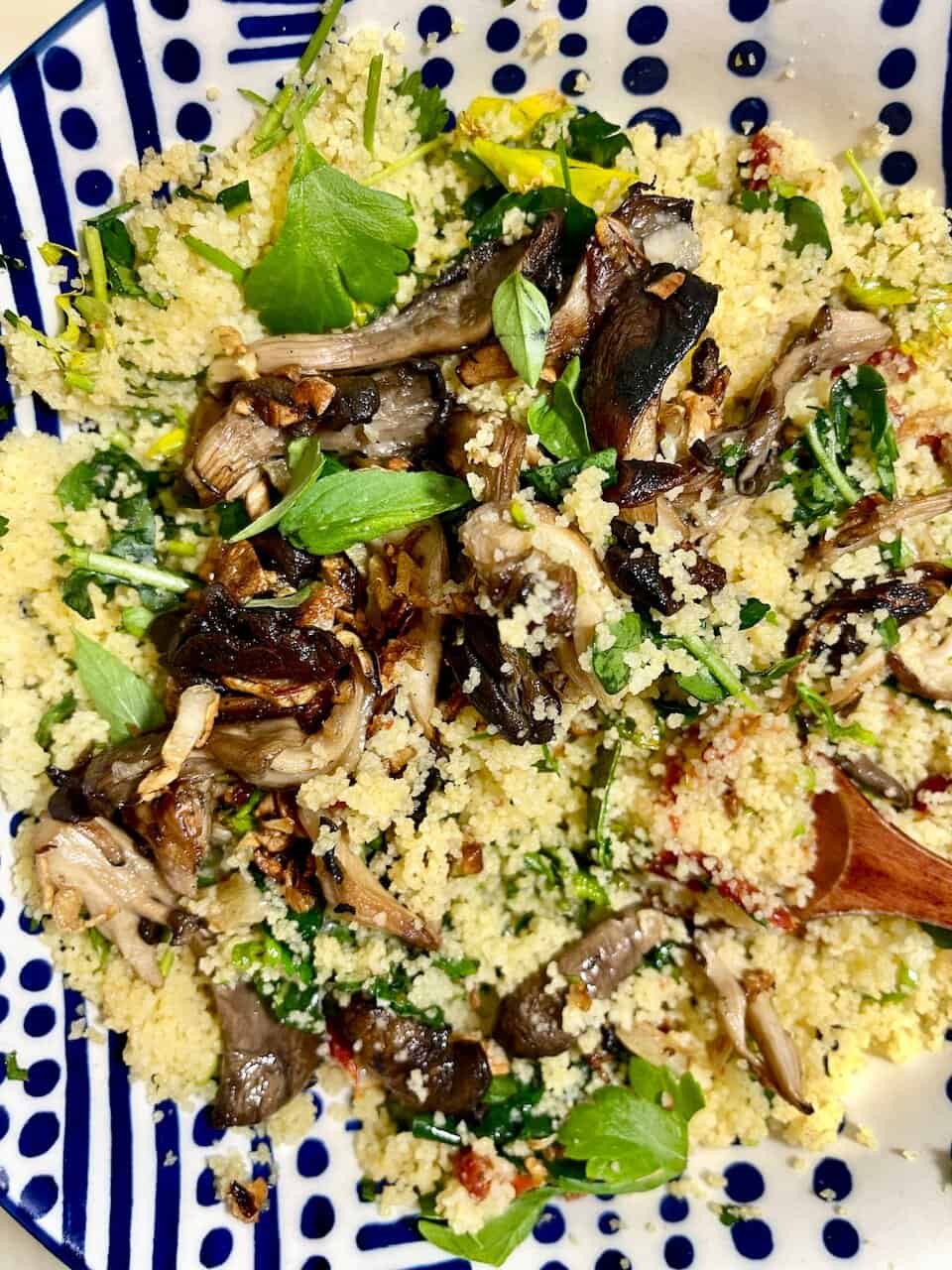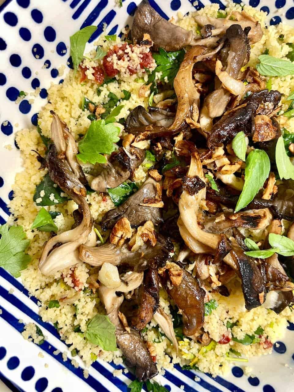 Lemon Herb Couscous Bowl with Garlicky Vegan Butter Oyster Mushrooms