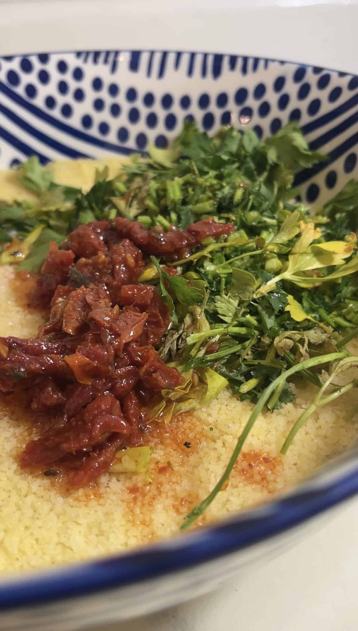 Couscous cooks quickly and fluffs up light and tender, making it the perfect base for a lemon herb couscous bowl. It absorbs olive oil and citrus beautifully.
