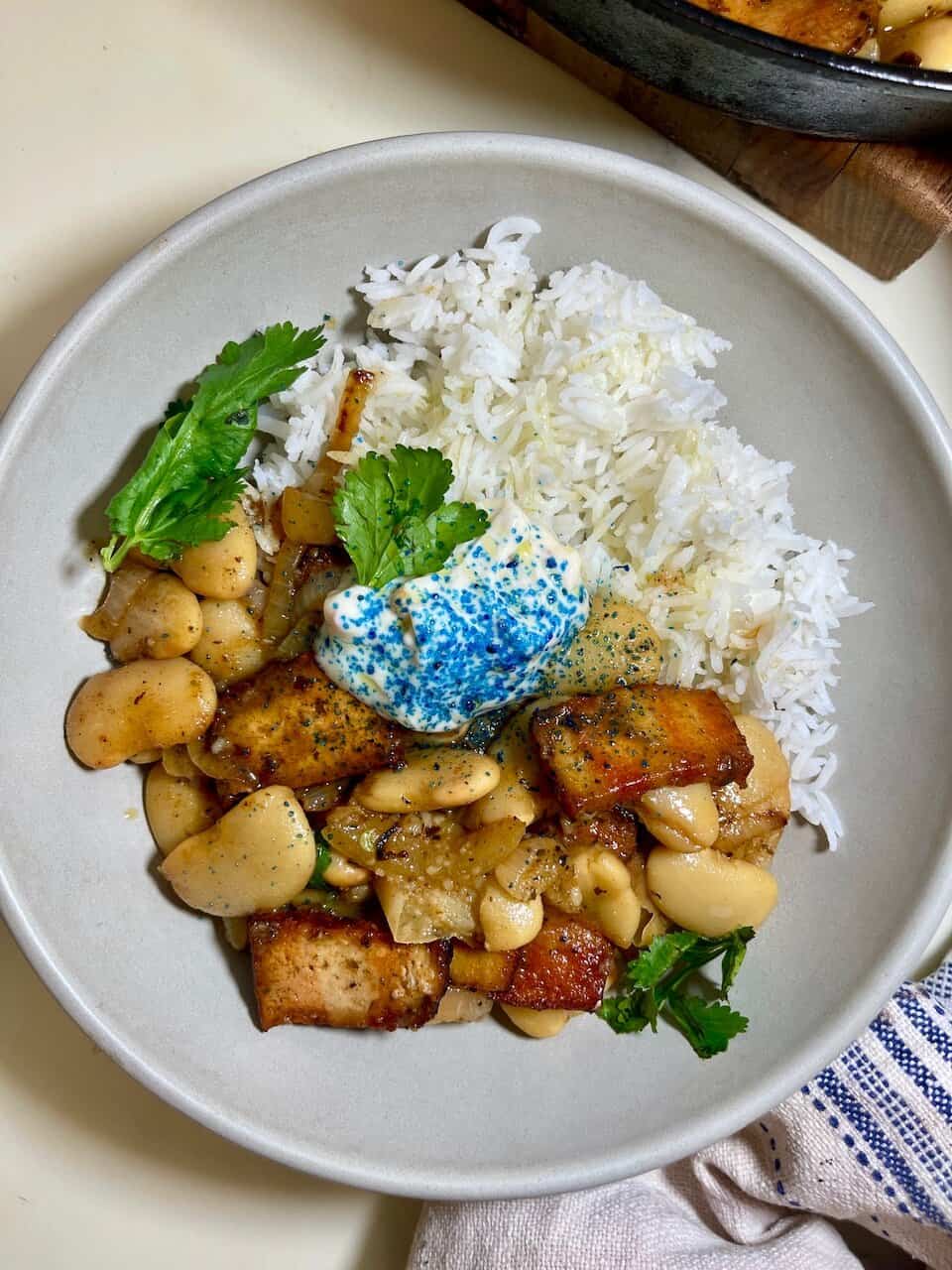 - One Pot Brothy Butter Beans Tofu With Greens