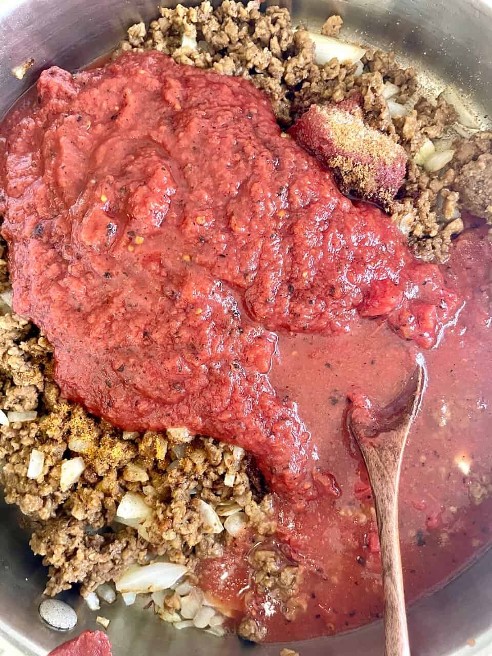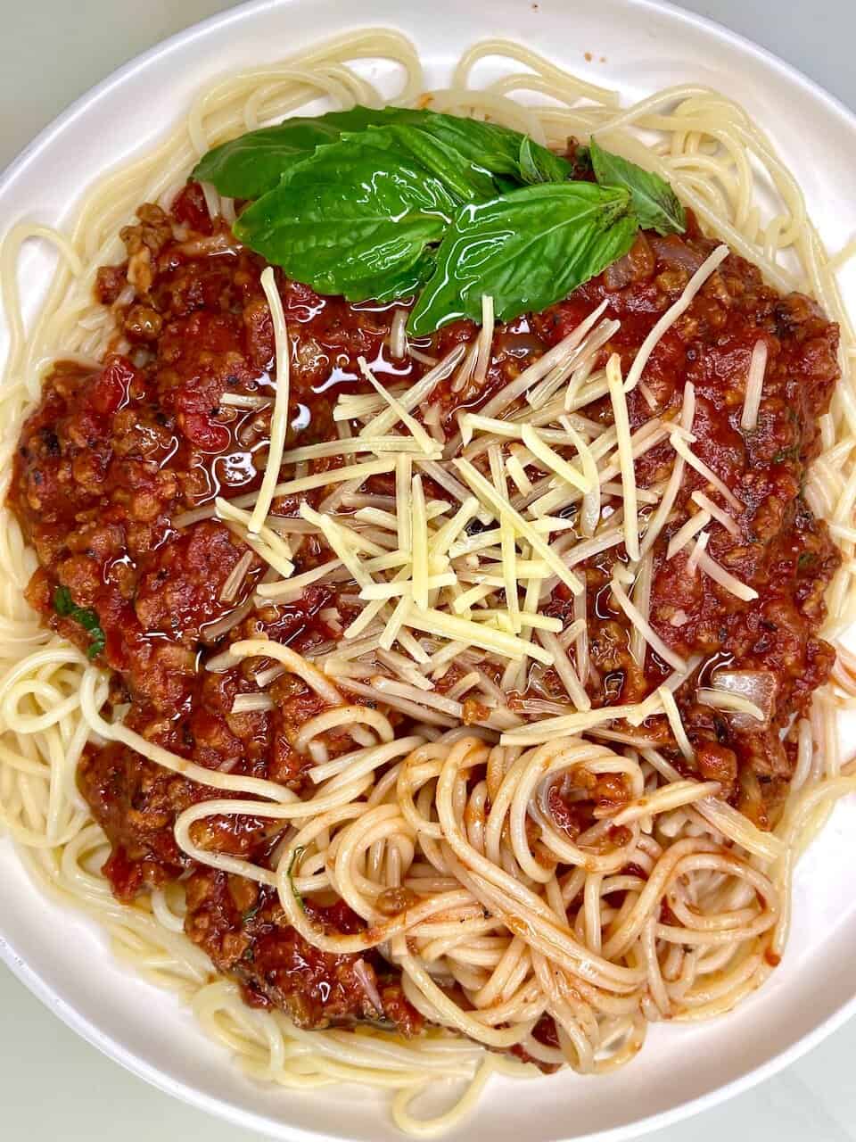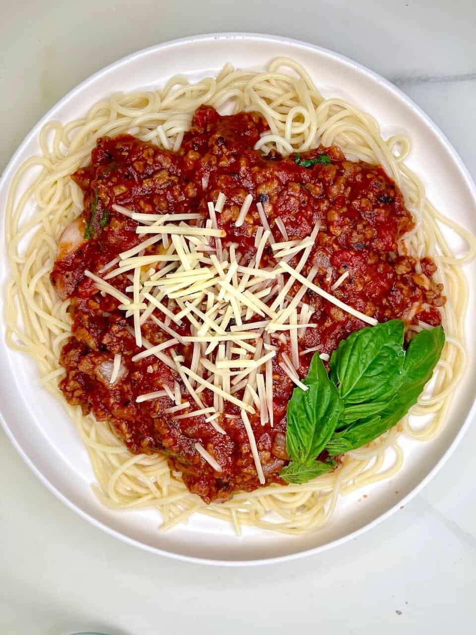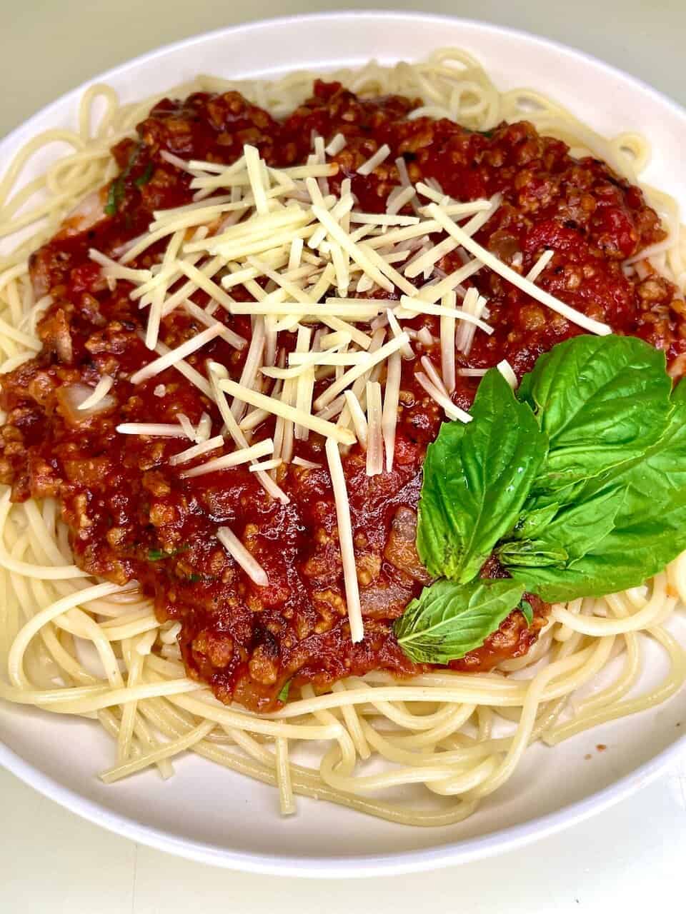 - Trader Joe’s Beefless Ground – The star of this vegan meat sauce, providing hearty texture and protein.