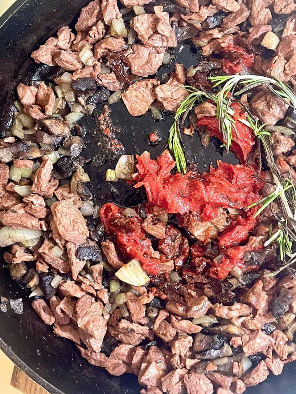 Instead of beef, we use Beyond Steak for a hearty, protein-packed bite that absorbs flavor beautifully. Sun-dried tomatoes and tomato paste add depth, nutritional yeast brings savory richness, and rosemary ties everything together with cozy, herbaceous warmth.