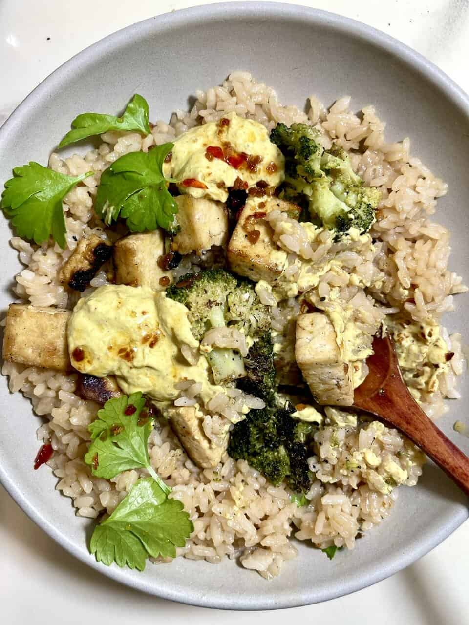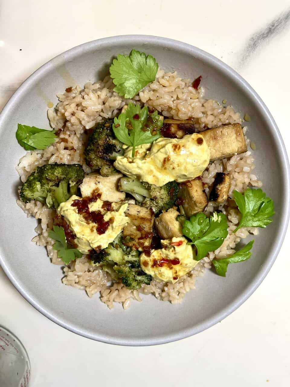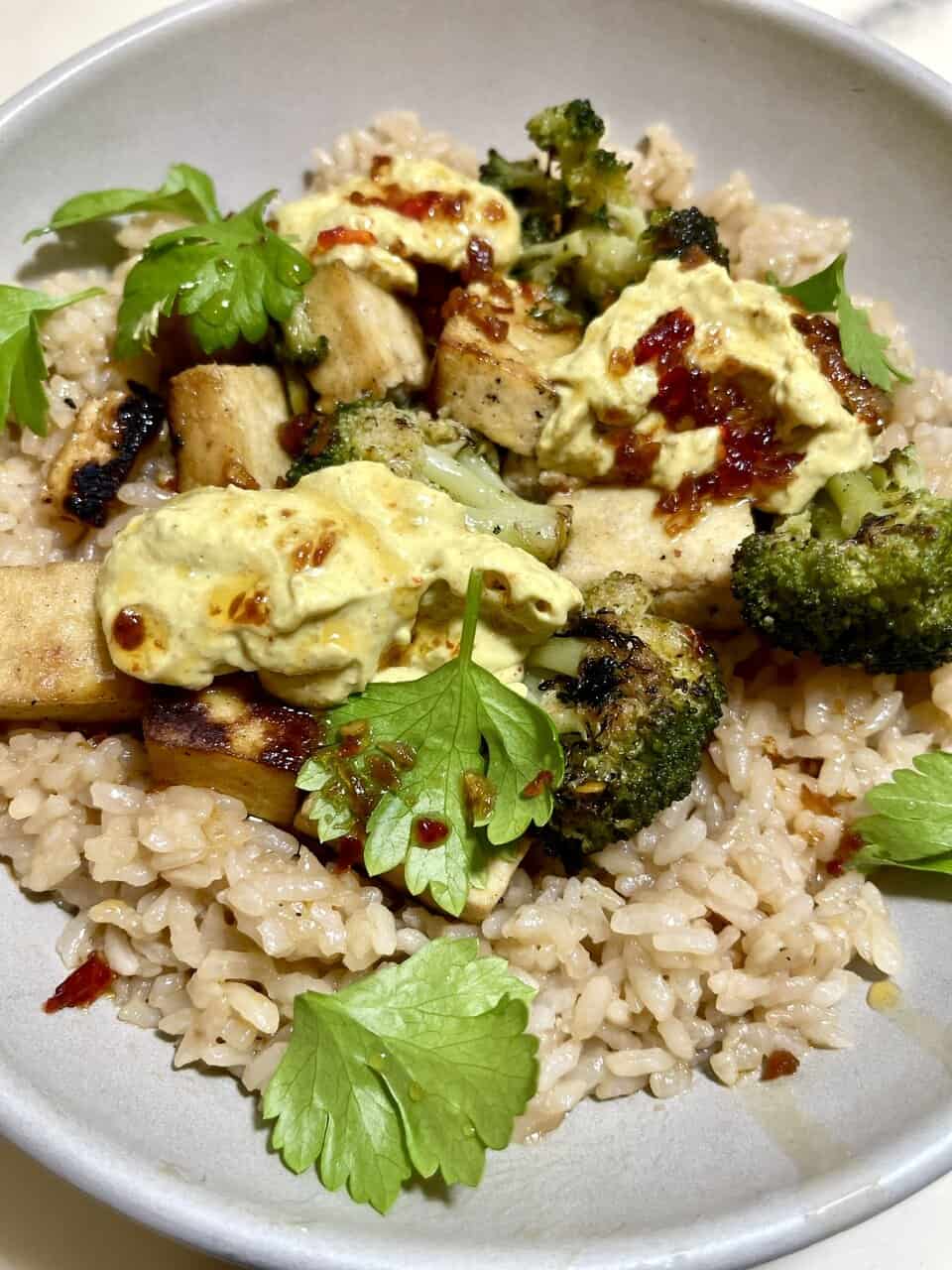 - Protein-boosted bowl – tofu, tempeh, or edamame