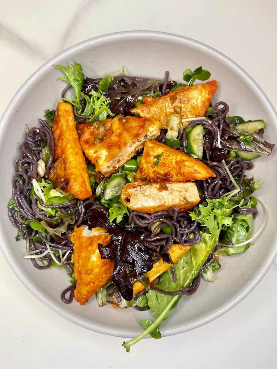 If you're craving something bright, cool, and satisfying on a warm day, this Vegan Cold Noodle Salad with Crispy Tofuis your answer. Packed with texture—from silky black rice noodles to pan-fried tofu and crunchy veggies—this dish is a nutritious, flavor-packed powerhouse.